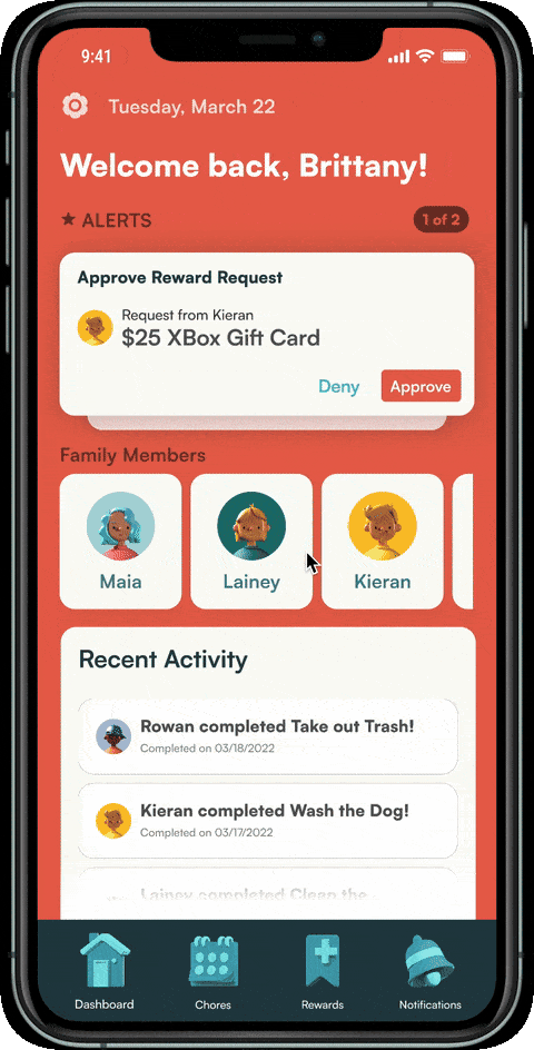 This visually-engaging family chore management app transformed insights from real families into a user-centered digital product that bridges the gap between parents and children through thoughtful interface design and gamification.